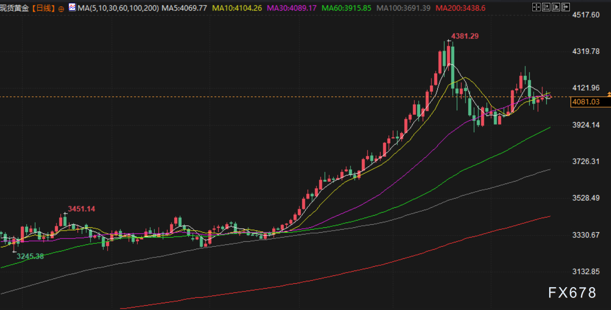 美元兑多数主要货币走强,令以美元计价的黄金对海外买家更加昂贵,进一步压制了黄金需求。尽管黄金作为传统避险资产今年已上涨55%,并在10月20日创下4381.22美元的历史新高,但近期市场呈现整固态势。
